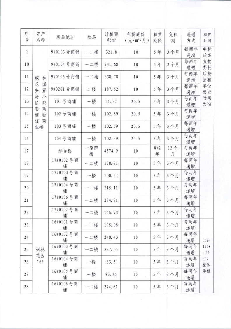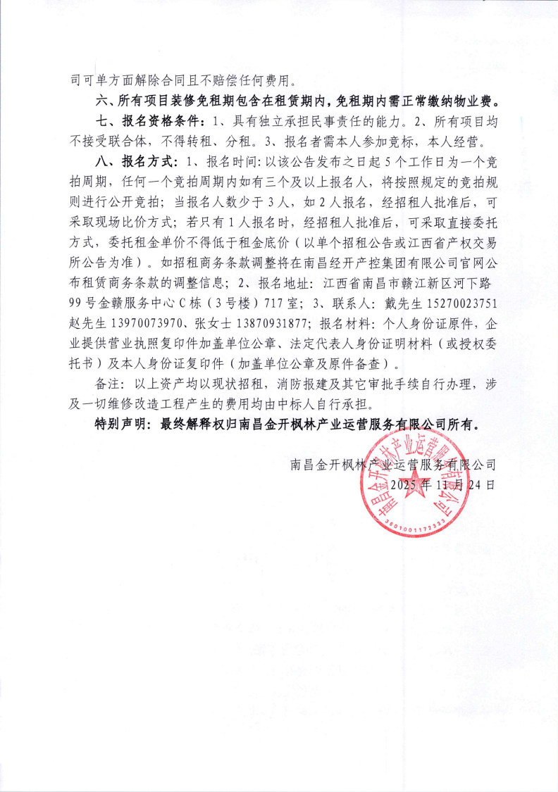南昌金开枫林物业管理有限公司五联花园安置房小区房屋租赁竞拍公告
