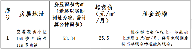 三、本次竞拍只报起竞价,房屋每间租金起竞价为: