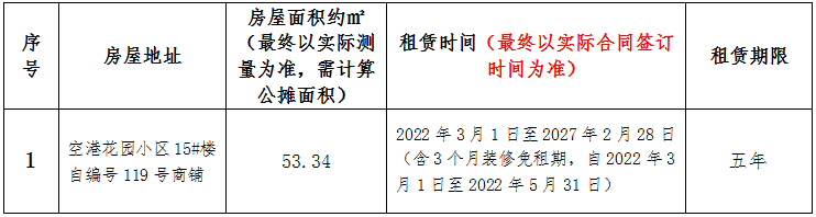 1、租金不含物业管理费,需另外按每月2元/㎡收取,装修免租期为3个月,免租期内需正常缴纳物业管理费。