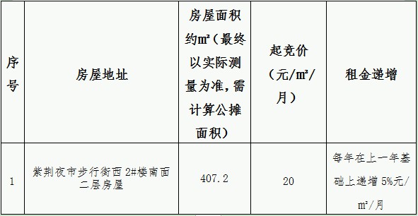 备注:(1)本次招租房屋涉及电表,水表、需中标人或直接委托人自费自行开户,房屋以现状出租,消防报建及其它审批手续自行办理,涉及一切维修改造工程产生的费用均由中标人自行承担。