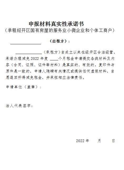 申报承租的服务业小微企业和个体工商户向出租经营用房的国有企业(租赁合同的出租方)提出书面申请,根据洪府发【2022】15号文件精神,由金开乐动(中国)Ledong·官方网站按照市、区相关减免政策减免承租国有房屋租赁租金进行审核,对符合条件的承租户给予减免。鼓励对老承租户实行“免申即享”新模式,通过梳理减租资产和承租户清单,对于现有材料能够证明其符合减租政策的承租户,在履行相应决策程序后,直接予以减免。