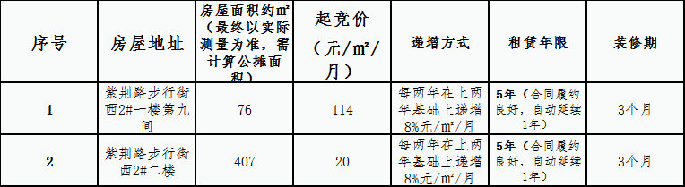 紫荆路步行街西2#一、二楼房屋租赁 竞拍公告