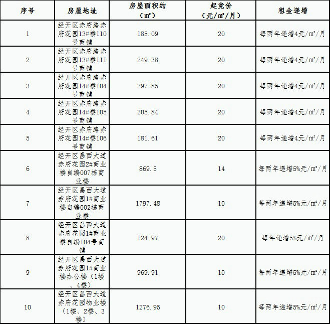 八、中标人及直接委托人定义:每一个竞拍周期报名结束后,有三个及以上报名人,将按照本公告规定的竞拍规则进行公开竞拍;当报名人数少于3人,则本次招租失败。若连续二个竞拍周期招租失败,在第三次竞拍报名期间(累计前2次)只有2人报名时,经招租人批准后,可采取现场比价方式,但不得低于招租底价;若只有1人报名时,经招租人批准后,可采取直接委托方式,13#楼2间;14#楼3间共计5间商铺委托租金单价为20.5元/㎡/月;1#商业楼1栋独栋商业楼委托租金单价为10元/㎡/月;2#商业楼1栋独栋商业楼委托租金单价为14元/㎡/月;1#商业楼自编104号商铺委托租金单价为20元/㎡/月;1#商业楼办公楼委托租金单价为10元/㎡/月;单独一栋物业楼委托租金单价为10元/㎡/月。本次竞拍只承认第一中标人,不按排名顺延中标人权利。
