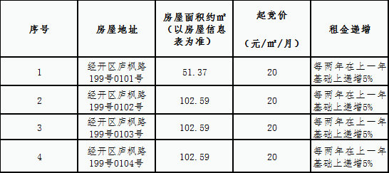 三、本次竞拍每间商铺租金起竞价如下: