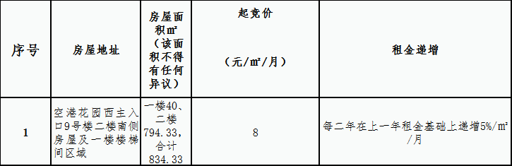 首次叫价为增幅后报价,不低于8.5元/㎡/月,每次报价增幅最低不低于0.5元/平方米/月的整倍数,如出现竞拍人仅举牌不叫价情况,即默认为在上一轮叫价基础上增加0.5元/平方米/月,否则应价无效。当最高价(超过底价)未有人追加竞价时,主拍人对该价重复三次报价,第三次重复报价无人应价,由主拍人宣布成交。本次竞拍取达到底价的最高报价人作为中标人,中标人若放弃中标人权力,不按排名顺延中标人,我司将做废标处理。