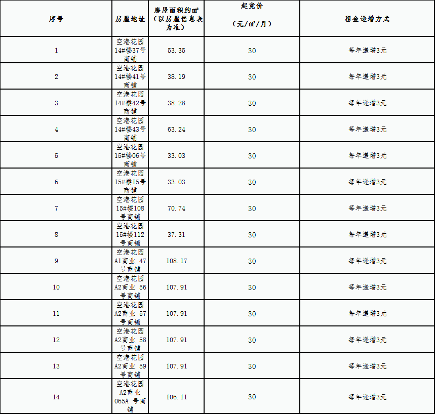 空港花园安置房小区房屋租赁竞拍规则