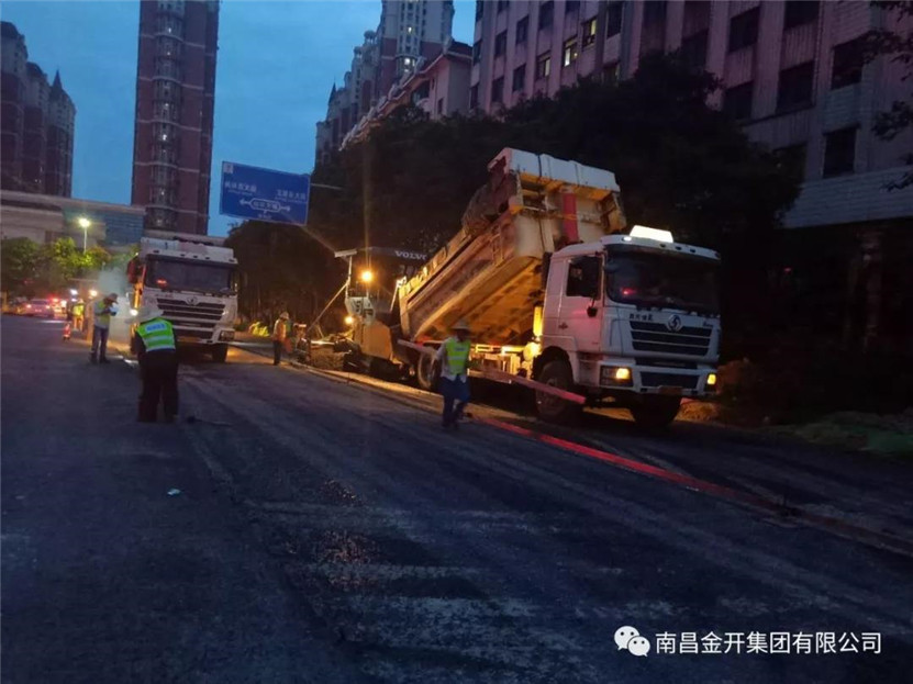 菊圃路提升改造工程桂苑大道至榴云路段底层沥青摊铺工作