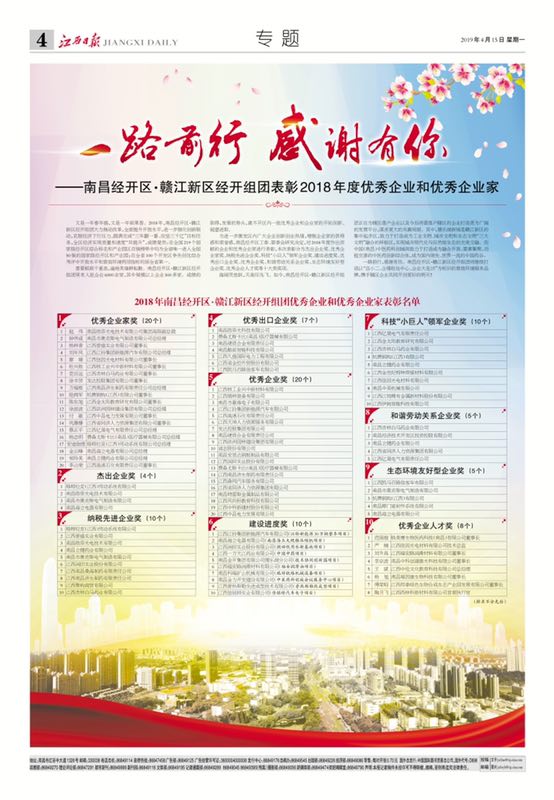 4月15日,在南昌经开区·赣江新区经开组团2018年度企业表彰大会上传来好消息,金开乐动(中国)Ledong·官方网站喜获3项殊荣:区投资控股公司荣获“和谐劳动关系企业奖”,儒乐湖分公司凭借技术协同创新园项目、金力公司凭借中医药科创城会议服务中心项目荣获“建设进度奖”。