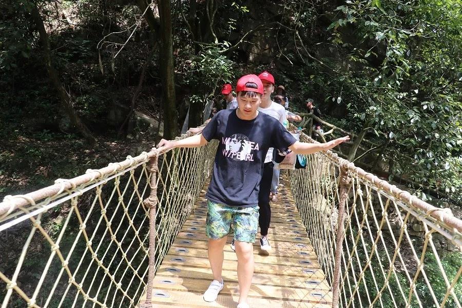 第二部分为团队丛林穿越。经过团队破冰过后,当跟着拓展教练一起进行5公里山路徒步时候,新老员工们已经结伴而行,大家一路互相打气,努力攀登向前。经过近一个小时的穿山过岭,全体队员都一个不落地攀登完全程,大家在锻炼身体的同时欣赏了自然风景,放松了身心,更增进了情谊,内心充满了能量。