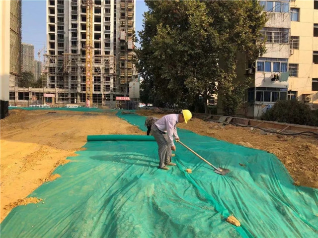 开启雾炮机降尘,组织工人裸土覆盖,基坑防护