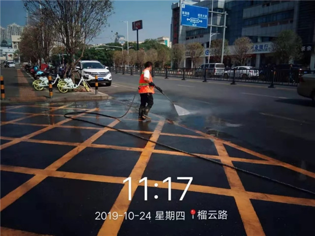 2、英雄大道全线路面冲洗,确保现场无扬尘污染;
