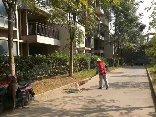 物业公司组织员工至各项目点做卫生清理活动。青岚嘉园组织保洁加班加点清理店面及广场的杂物并对破损窨井盖进行维修。