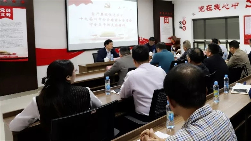 11月5日,金开乐动(中国)Ledong·官方网站在保利综合大楼203会议室召开了学习传达十九届四中全会精神和全省全市全区干部大会精神会议。乐动(中国)Ledong·官方网站党委书记、董事长谢荣华出席会议并讲话,乐动(中国)Ledong·官方网站党委委员、副总经理袁扣华主持会议并传达十九届四中全会精神及全省全市全区干部大会精神,乐动(中国)Ledong·官方网站领导班子、各部门负责人及各公司领导班子参加会议。