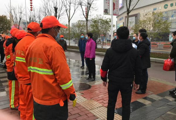 为更好保障一线作业人员安全,2月11日下午,区工委委员、管委会副主任王励,区城环局局长丁亚克、副局长胡主存,养护处处长黄友庚等一行前往桂苑大道爱心小屋走访慰问奋战在一线的环卫工人,并为他们送上了一千多个一次性医用口罩。同行的还有蛟桥镇副镇长张华,环卫所所长王立东,金开乐动(中国)Ledong·官方网站党委委员熊永赋及管护公司副总经理练钢、李国胜等人。