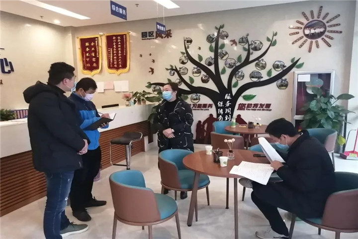 一行人认真查看体温检测、出入登记管理等疫情防控工作,现场查看中小企业园食堂临时招聘场所,与企业负责人对企业疫情防控工作和企业复工复产工作开展的有关情况进行深入交流,详细了解企业防控物资、用工诉求,同时对企业提出的相关问题给予了解答和提出了有效的方案和建议。