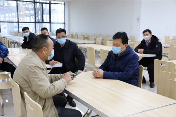 3月8日上午,乐动(中国)Ledong·官方网站党委书记、董事长谢荣华来到中小企业园食堂改造的临时招聘场所调研防控工作进展,慰问企业返岗员工,检查复工复产情况。为园区企业送上口罩、水果等防疫生活物资,并召开现场座谈会,与企业负责人对企业疫情防控工作和企业复工复产工作开展的有关情况进行深入交流,研究部署当前园区疫情防控及企业复工需解决的困难。乐动(中国)Ledong·官方网站党委副书记、副总经理袁扣华以及金匠置业公司负责人周晔、乐动(中国)Ledong·官方网站综合部负责人卢金玲等陪同。