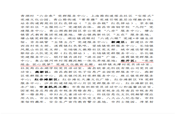 6月以来,为使该长廊进一步巩固党性教育基地建设成果,乐动(中国)Ledong·官方网站党委积极组织开展全市党性教育重点基地申报工作,并全力配合区组社部、市委组织部验收复核审核工作。其中,6月12日,邀请市委组织部组织三处处长于韧、区组社部组织处处长魏玲来乐动(中国)Ledong·官方网站查看指导党建文化长廊建设情况,并对长廊有关装饰、内容进行了整改完善,最终成功获评为南昌市党性教育重点基地。