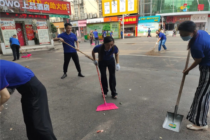 7月6日上午,乐动(中国)Ledong·官方网站党委副书记袁扣华、乐动(中国)Ledong·官方网站总经济师钟序辉带领正合公司、金匠置业公司全体员工来到紫荆路夜市、步行街,按照“全覆盖、见底色、见本色”要求开展全市集中大扫除活动,清理卫生死角,清除积存垃圾,共同扮靓扮美幸福紫荆夜市。