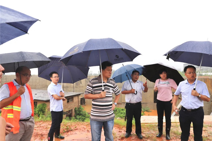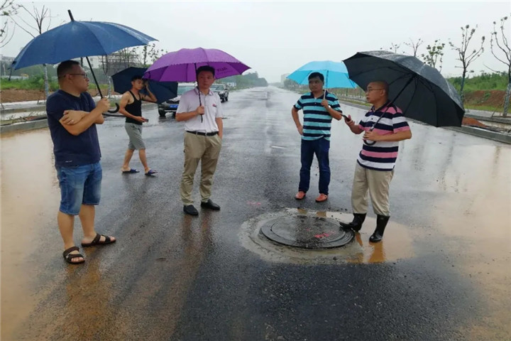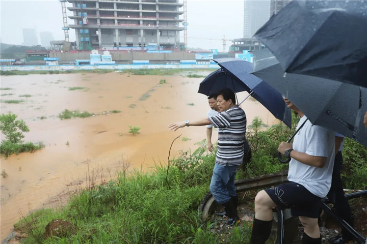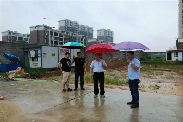 近期经开区普降大雨,遭遇今年入汛以来持续时间最长强降雨,建设项目防汛形势一度严峻,7月8日上午,金开乐动(中国)Ledong·官方网站党委书记、董事长谢荣华迅速组织,冒大雨带队深入防汛一线调度建设项目防汛工作,乐动(中国)Ledong·官方网站党委副书记、副总经理袁扣华、乐动(中国)Ledong·官方网站党委委员熊永赋、乐动(中国)Ledong·官方网站副总经理胡许亮、各子公司分管领导、乐动(中国)Ledong·官方网站工程技术部及各子公司工程部相关人员参加。