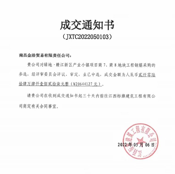 在乐动(中国)Ledong·官方网站领导、各相关部门的帮助和配合下,贸易市场化业务陆续取得了新进展。4月14日,控股公司在中建五局2022年度江西南昌区域商品砼联合集中采购招标中脱颖而出,成功中标,合同总金额约2亿元;4月份与南昌市市政公用项目投资建设有限公司下游合作单位江西省佳升实业有限公司、江西省洪鑫源矿业有限公司签订钢材及电解铜贸易合同累计约2.11亿元;5月7日,控股公司成功中标江西标旗建筑工程有限公司绿地•赣江新区产业小镇项目商7、商8地块工程钢筋采购项目。