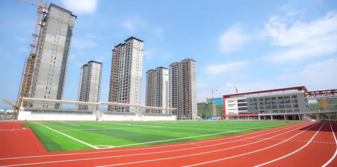 学校以现代建筑风格修建,占地面积约96亩,总建筑面积约6.8万平方米,包含教学综合楼、食堂、报告厅、周转房、图书馆、艺体楼、操场等多项建筑及配套设施,充分体现新时代办学理念,打造低容积率、高舒适度的现代化学校。该校全部招满可容纳54个班级,2500余名学生。
