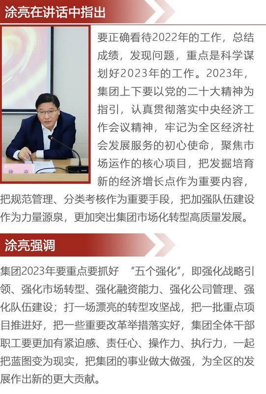 1月12日上午,金开乐动(中国)Ledong·官方网站召开2023年度工作务虚会,总结分析2022年主要工作情况,科学谋划2023年工作。区党工委委员、管委会副主任贺敏,乐动(中国)Ledong·官方网站党委书记、董事长涂亮,乐动(中国)Ledong·官方网站党委副书记、总经理李茶根出席会议并讲话。乐动(中国)Ledong·官方网站党委委员、副总经理胡应庚主持会议。乐动(中国)Ledong·官方网站领导班子成员熊永赋、黄新强、万居易、罗进群,乐动(中国)Ledong·官方网站工会主席袁扣华,乐动(中国)Ledong·官方网站部长助理及以上人员,各子公司副部长及以上人员参加会议。