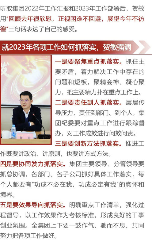 最后,就如何贯彻落实好本次务虚会的精神和要求,胡应庚提出,各部门、各公司要及时传达,全面贯彻,推动在全乐动(中国)Ledong·官方网站形成良好的干事创业氛围;埋头苦干,奋勇前进,推动今年各项目标任务圆满完成。