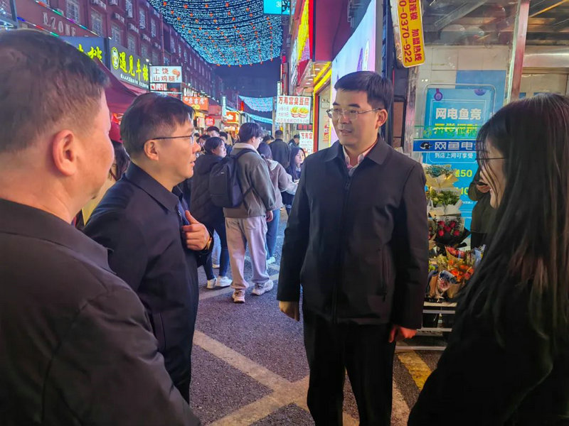 贺敏一行边走边看,实地查看了紫荆夜市的环境秩序和业态布局,听取了夜市运营管理和未来发展思路的介绍,并就现场商户经营、市民消费等现状进行了细致的了解,就现场管理工作中挖掘的亮点工作和目前遇到的困难和不足,进行了现场协调和调度。