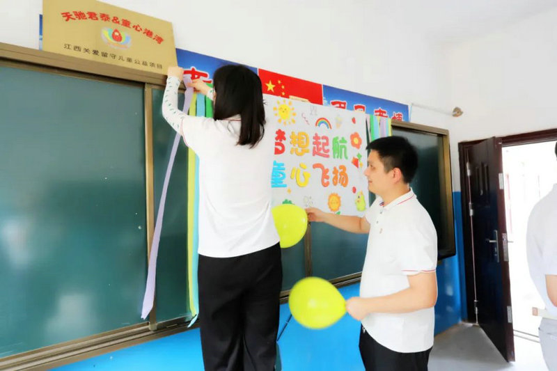 下午2点40分,一到莲塘小学,金开乐动(中国)Ledong·官方网站的团员青年们就着手布置活动室,为小朋友们营造“六一”氛围。布置的过程中,两位驻塘村青年选调生和莲塘小学的小朋友们也纷纷加入,大家齐心协力把活动室装扮地五彩缤纷、童趣盎然。