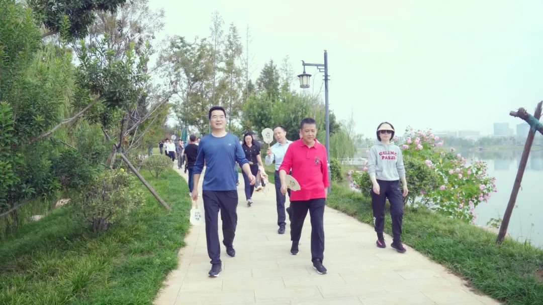 揭牌仪式结束后,俱乐部首场活动——多彩金秋健步走成功举办。江西银行总行行长骆小林,区党工委委员、管委会副主任贺敏受邀出席活动,经开产业控股乐动(中国)Ledong·官方网站、江西银行赣江新区分行、临空城投,驻区企业家共计40余人参加活动。活动中,大家沿着杨家湖公园游步道健步前行,置身于阳光和煦的大自然中,大家不时停下脚步,饱览自然风光,感受生态之美;不时观赏民间传统技艺,感受人文魅力。大家在轻松愉快的氛围下互动交流。