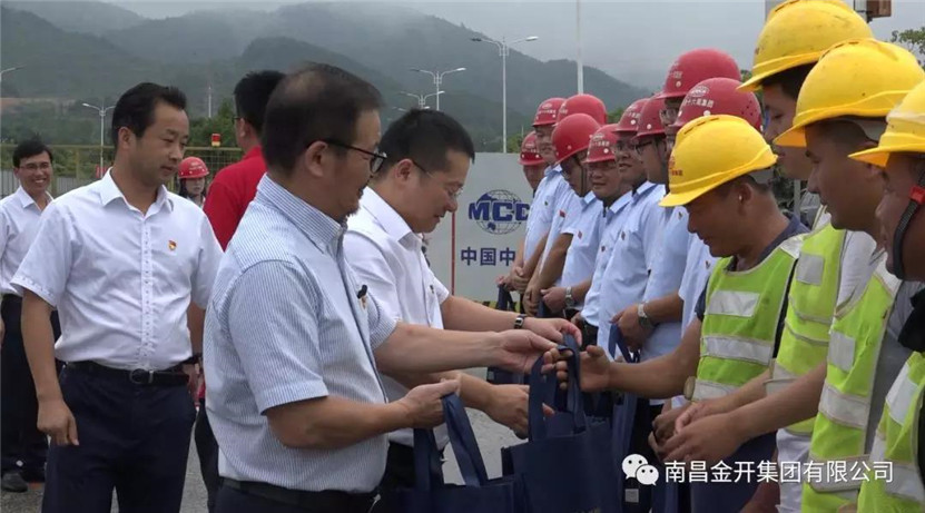 在项目建设现场,慰问组看望了正冒雨坚守岗位的一线党员、流动党员和施工人员,在送去党委节日关怀和问候的同时,还为他们送去了矿泉水、金银花露、西瓜及防暑降温药品等慰问品,并叮嘱他们务必注意高温阴雨天气施工安全,在保障安全和质量的前提下,继续发扬“5+2”、“白加黑”精神,加快工程建设进度,凝心聚力促项目早日完工。